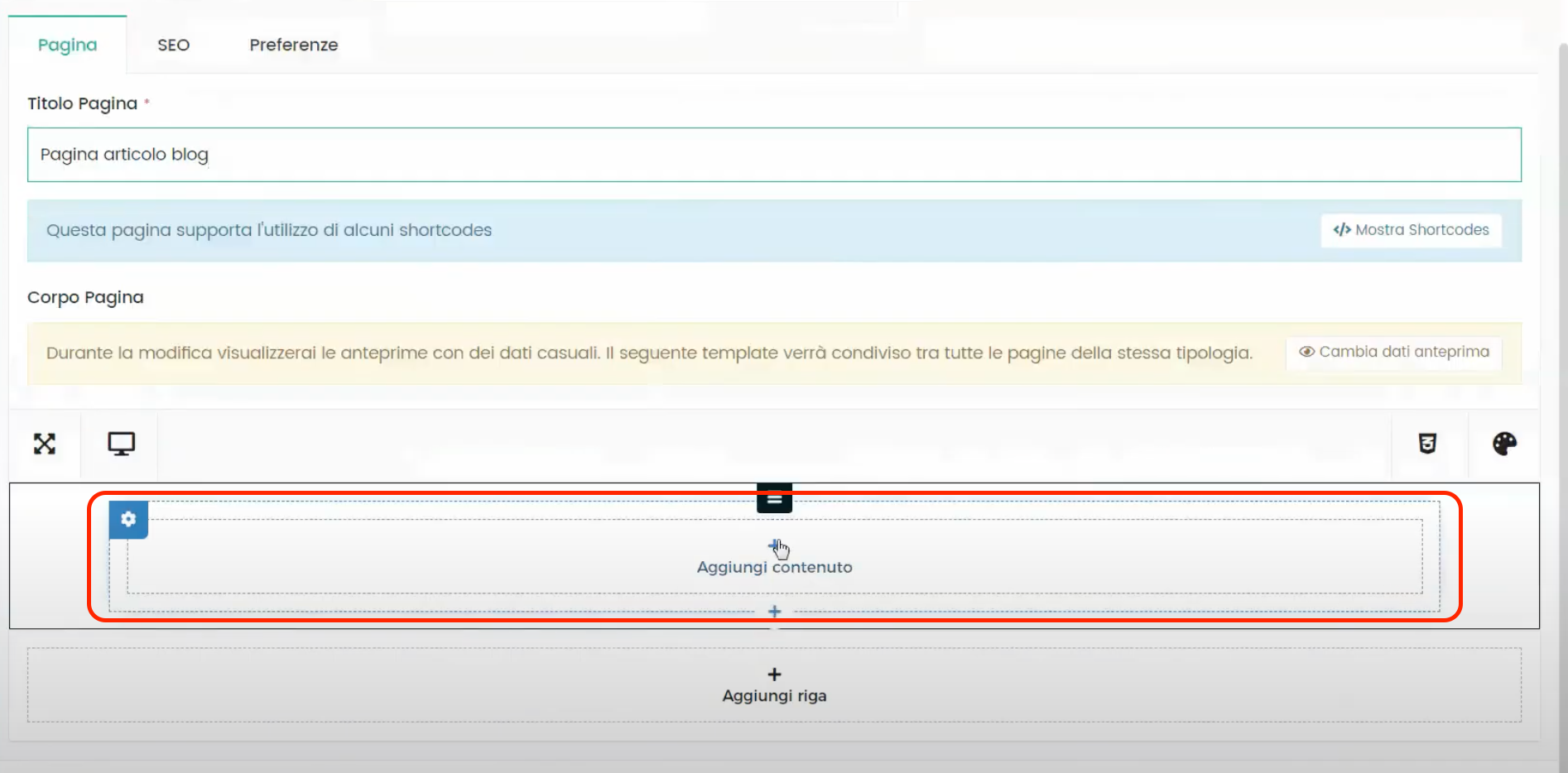 IMPORTANTE: cada elemento que inserimos dentro da estrutura da prévia de um único artigo deve ser tornado clicável, de modo que o usuário, ao clicar na imagem ou no título ou descrição, será levado à página do artigo completo. Para fazer isso, para cada elemento que inserimos, clicamos no símbolo do lápis como mostrado na figura: