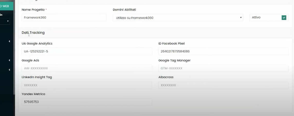 Após inserir os Dados do projeto, como explicado no passo anterior, agora para completar a criação do projeto devemos inserir na seção Dados de Rastreamento os vários IDs dos diversos Scripts de Rastreamento.