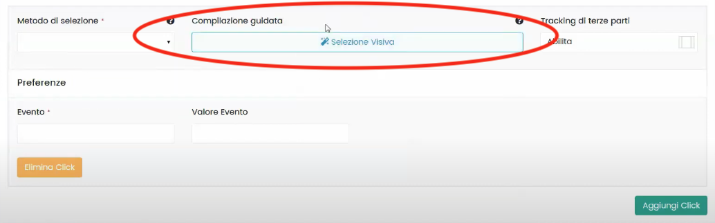 A seleção visual nos dará a possibilidade de abrir um iframe do site onde poderíamos clicar diretamente no botão que nos interessa rastrear.
